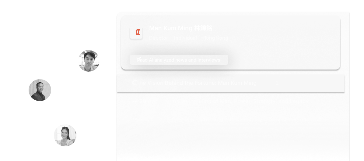 Our AI-powered platform provides comprehensive insights across millions of companies in Hong Kong and Singapore.